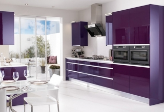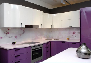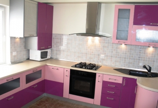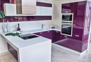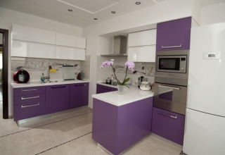 Кухня с фасадами из массива дуба, боковины шкафов отделаны шпоном, столешница из искусственного камня.